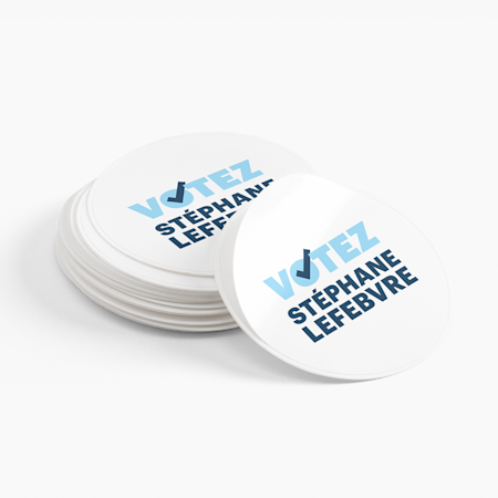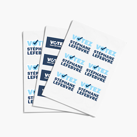 Oui. Tous les produits peuvent être personnalisés avec les couleurs, le logo, le slogan et le message de votre campagne. Utilisez nos outils de création en ligne pour concevoir vos supports ou importez vos propres fichiers.