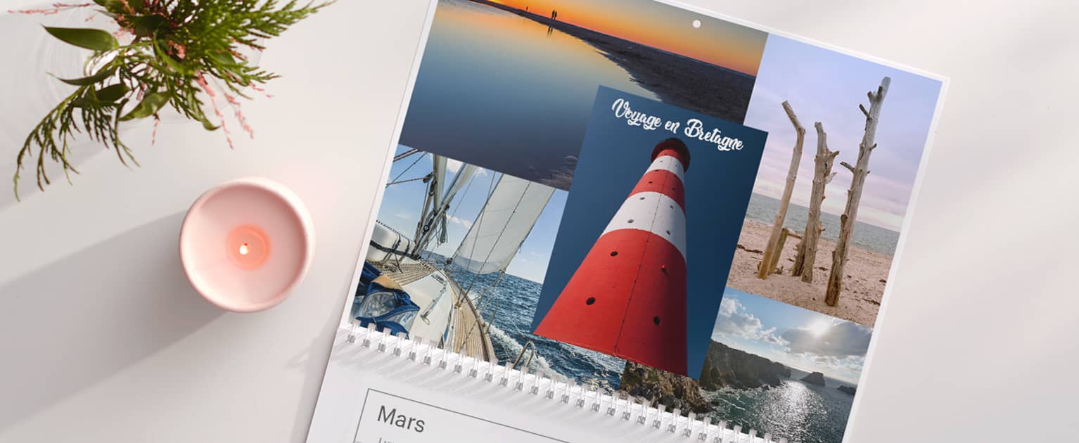 Voyager sans bouger de votre canapé avec un calendrier mural : vous pouvez sélectionner vos plus belles photos de voyages, de promenades, les destinations où vous rêvez d’aller, etc. Idéal dans son bureau pour se motiver jusqu’aux prochaines vacances pendant le télétravail, ou encore comme cadeaux de Noël ou de fin d’année pour donner de nouvelles idées d’escapades à votre cher(e) et tendre en 2026.