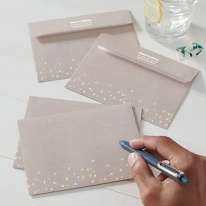 Si vous optez pour l’écriture à la main des adresses, choisissez un stylo fiable qui ne risque pas de couler et prenez un peu de temps chaque jour pour écrire le plus élégamment et lisiblement possible. Sinon, optez pour nos étiquettes d’adresse. - N’oubliez pas les remerciements.