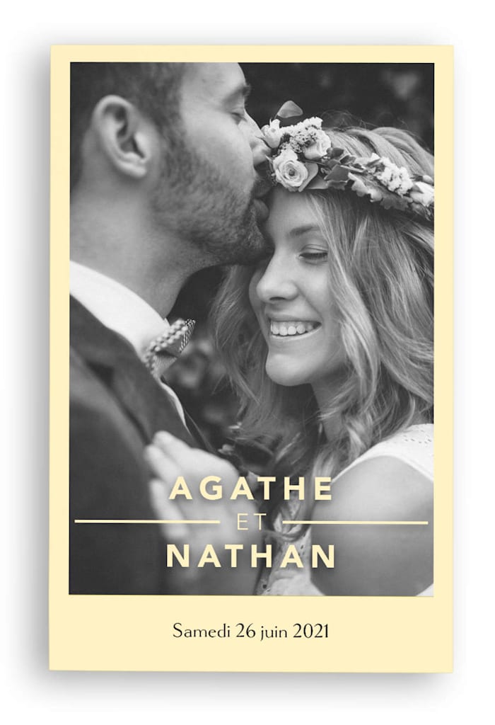 Pourquoi ne pas choisir une couleur unique comme fil rouge de votre mariage ? Bonne nouvelle : l’Institut américain Pantone a désigné comme couleur de l’année 2021 un beau jaune éclatant appelé « Illuminating ». De quoi éclairer un peu l’avenir après une sombre année 2020 avec un faire-part monochrome.