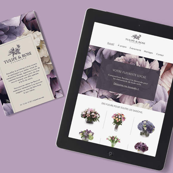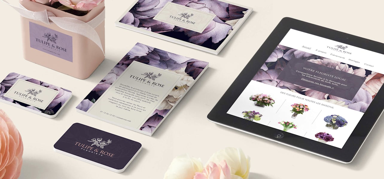 Voici quelques supports marketing de TULIPE & ROSE qui contribuent à la création d’une image de marque cohérente (en ligne comme physiquement) et au renforcement de sa crédibilité.
