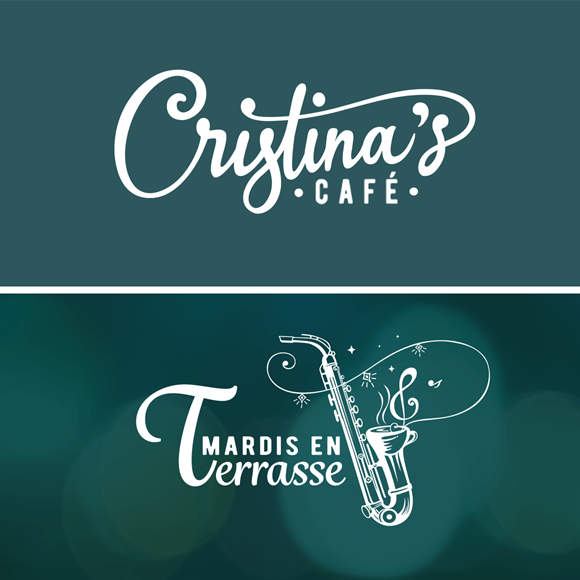 Ainsi, tout comme celui du Cristina’s Cafe, le logo des « Mardis en terrasse » utilise une police qui imite le charme de la calligraphie.