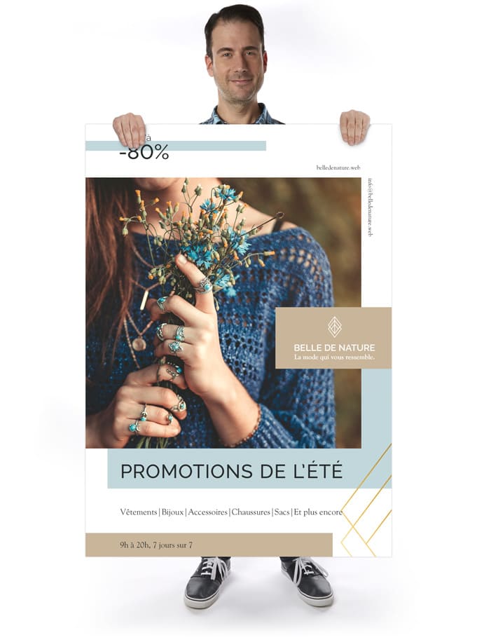 Vous souhaitez encore plus de visibilité dans l’espace public, et être certain que vos cibles ne vous ratent pas ? Choisissez l’affiche B1, aux dimensions 70 x 100 cm.