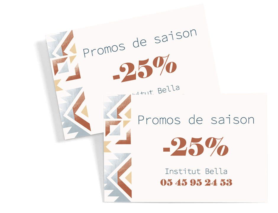 Créez des cartes de visite à double emploi : d’un côté vos coordonnées, de l’autre une offre promotionnelle ou des cases pour votre programme de fidélité.