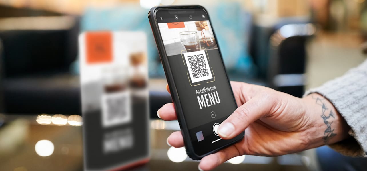 Les codes QR sont de nouveau employés pour donner accès aux menus des restaurants sans contact. C’est l’une de leurs utilisations les plus populaires. Si vous ne l’avez pas déjà fait, créez un code pour votre restaurant et affichez-le bien en vue à un endroit où il peut facilement être scanné. Vous pouvez le faire imprimer sur un mini roll-up, un autocollant pour fenêtre placé sur votre porte ou une banderole à côté du comptoir.