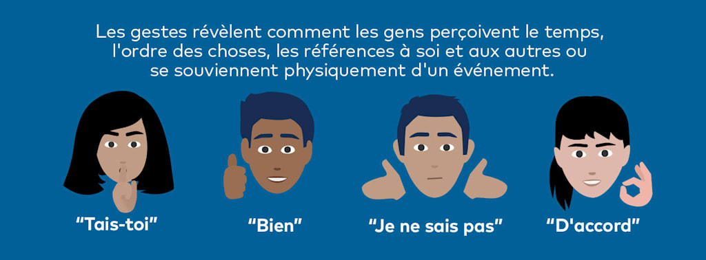 On transmet ainsi comment on perçoit le temps, l’ordre des choses et son expérience physique d’un événement en utilisant des gestes pour le rejouer.