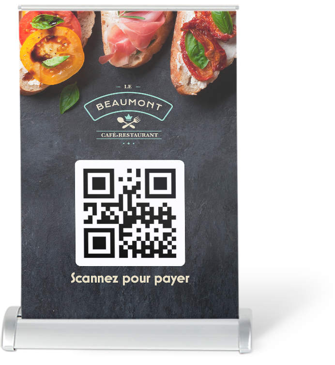 Si vos clients ne veulent pas payer par avance par téléphone ou en ligne, collectez les paiements par le biais d’un code QR à leur arrivée. Faites imprimer votre code QR sur des autocollants, des banderoles et d’autres articles en toute simplicité. Vous serez ensuite en mesure d’accepter les paiements rapidement et de façon sécurisée.