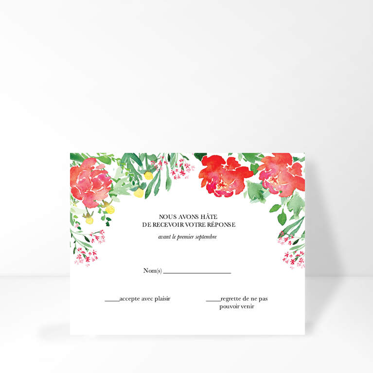 Si vous proposez différentes options pour le repas, c’est sur cette carte que vous devez les préciser et que les invités doivent indiquer leur choix.