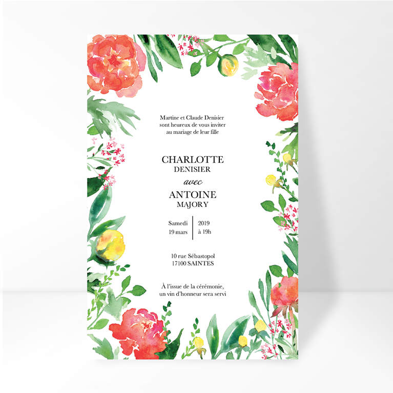 Juste après la ligne d’invitation viennent en général les noms et prénoms du couple dont la police, la couleur ou la taille sont différentes, de façon à les faire ressortir sur le faire-part. Indiquez ensuite le jour de la semaine, la date, l’heure de la cérémonie et le lieu.