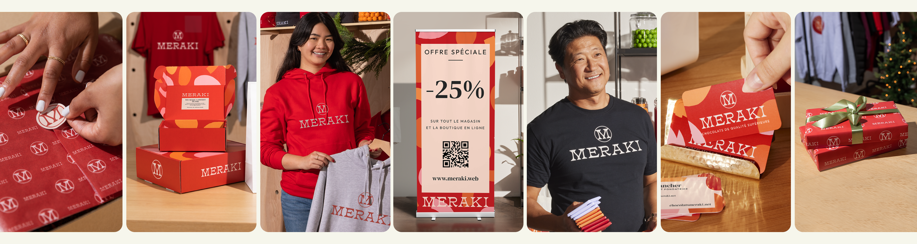 Pour l’extérieur, misez sur des chevalets de trottoir, des adhésifs pour vitrine ou des drapeaux plume pour attirer l’attention sur votre boutique. À l’intérieur, mettez vos offres en valeur avec des roll-ups, des affiches ou encore des pancartes de table. Associez ces packagings pour les fêtes assortis pour créer un ensemble cohérent.