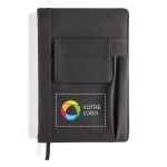 Impressionnez les participants de votre prochain salon professionnel avec ce carnet doté d'une pochette pour téléphone. Protège-carnet élégant, pochette frontale pour téléphone, fente pour stylo et grande pochette... tout pour que vos prospects se souviennent de votre entreprise ! Ajoutez simplement votre logo et offrez-le sans modération.