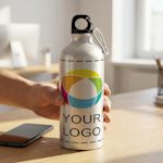 Cette bouteille d'eau en aluminium est idéale pour les événements sportifs, les voyages, la salle de sport et plus encore. Elle est légère et facile à attacher aux sacs, sacs à dos ou ceintures. De plus, avec son double bouchon, bec verseur pratique et un bouchon vissable, siroter votre boisson préférée n'a jamais été aussi facile. C’est la bouteille idéale pour boire en déplacement. Ajoutez simplement votre logo ou message à l'aide de notre studio interactif et transformez cette bouteille d'eau publicitaire en une publicité ambulante pour votre entreprise. Et si vous avez besoin d'aide, nos graphistes sont à votre disposition pour transformer votre idée de design en réalité.