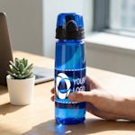 Visualisez vos objectifs marketing et l'hydratation quotidienne de chacun grâce à cette bouteille d'eau transparente Capri. Conçue en Eastman Tritan™, un matériau antitache et résistant aux odeurs, cette gourde personnalisée est légère et solide. En outre, elle est sans BPA et ne sécrétera pas de toxines dans votre boisson, préservant ainsi la santé et l'énergie de vos collaborateurs. Grâce à son couvercle rabattable avec bec verseur, votre boisson est protégée – et le bouton à pression facilite l’ouverture et permet de boire tout en se déplaçant. C'est l'accessoire idéal, que ce soit pour une simple promenade, une matinée intensive à la salle de sport ou une journée de plein air en famille. De plus, cette gourde constitue un cadeau attentionné à offrir à vos nouveaux employés ou à des prospects lors d'un salon professionnel, leur permettant de s'hydrater en tout temps. Rendez-vous dans notre studio de création intuitif pour la personnaliser en y ajoutant votre logo, slogan ou graphisme. Besoin d’aide ? Notre équipe d’experts se tient à votre disposition.