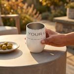 Qu’il s’agisse de vin frais par une nuit d’été ou d’une tasse de thé près d’un feu de camp, ce verre sans pied personnalisé vous rendra service. Ce verre en acier inoxydable résistant doté d’une double paroi gardera vos boissons chaudes ou froides plus longtemps. De plus, il est fourni avec un couvercle transparent ce qui donne une touche cool à son look déjà élégant. Ajoutez votre touche personnelle – votre logo, vos coordonnées ou votre message – en utilisant notre studio de création et transformez ce verre en cadeau mémorable. Si vous avez besoin d’aide pour personnaliser votre graphisme, nos experts se feront un plaisir de vous aider.