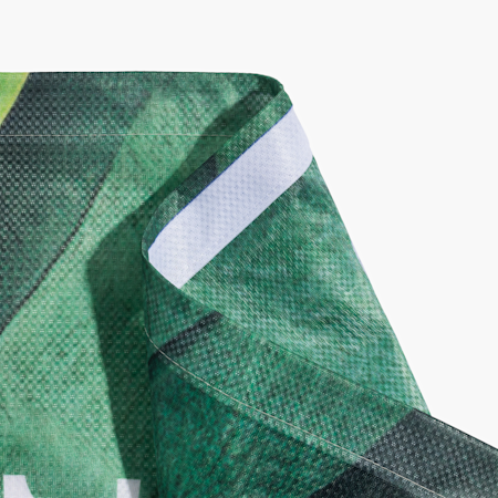 Nos banderoles standard sont fabriquées dans un matériau résistant sans PVC offrant les mêmes performances que le vinyle classique, et adapté à une utilisation intérieure comme extérieure. Les bâches textiles sont plus légères que le vinyle et sont fabriquées à partir de polyester 100 % recyclé post-consommation, ce qui permet de les manipuler et de les transporter plus facilement, tout en offrant un rendu plus doux et plus élégant. Nos bâches microperforées présentent des microperforations qui laissent passer l’air, ce qui les rend idéales pour une utilisation en extérieur par temps venteux. Les banderoles sans PVC constituent une solution plus durable que les banderoles en vinyle classique. Elles ne contiennent pas de chlorure de polyvinyle. Elles sont donc moins toxiques pour l’environnement et plus faciles à mettre au rebut.