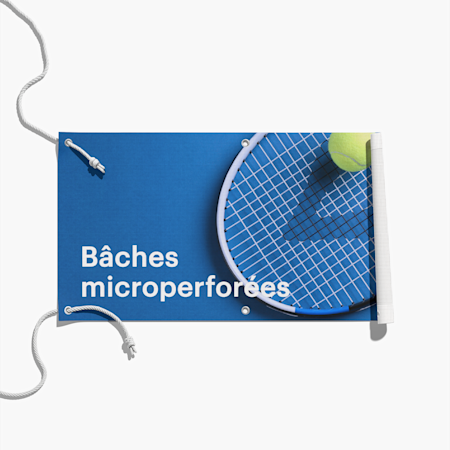 Les bâches microperforées sont légèrement transparentes. Votre graphisme sera donc légèrement moins éclatant que sur une banderole standard ou une bâche textile à suspendre. Les bâches microperforées sont idéales pour les polices et images de grande taille, tandis que le vinyle et le tissu fonctionnent très bien pour les graphismes plus complexes.