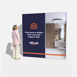 Vous avez le choix entre 2 formes pour la structure (incurvée et plate) et 2 formats. Votre graphisme sera imprimé sur un tissu en polyester résistant, idéal pour les couleurs vives et les images. Vous pouvez également utiliser le kit d’éclairage LED en option pour faire ressortir encore plus votre graphisme.