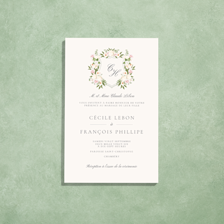 Un assortiment de mariage classique comprend une carte « save the date », un faire-part de mariage et une carte de réponse ou un carton d’accompagnement. Si vous souhaitez donner à vos invités la possibilité de confirmer leur présence de façon numérique, ajoutez un code QR sur votre invitation pour les renvoyer directement au site Internet de votre mariage.