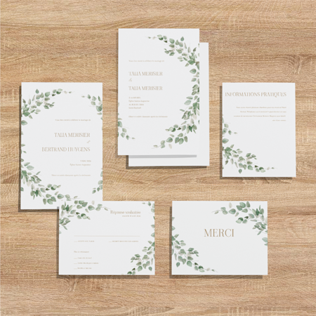 Trouvez l’ensemble de papeterie qui reflète parfaitement l’esprit de votre mariage.