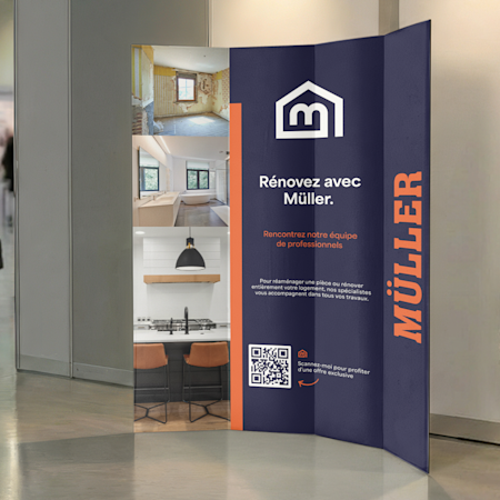 Adaptez votre banderole à votre espace grâce à nos différentes options. Les banderoles standard sont parfaites pour habiller le fond de votre stand, les bâches microperforées résistantes au vent sont idéales en extérieur et les bâches textiles apportent un soupçon d’élégance à votre espace. Choisissez le format qui vous convient (de A4 à 2,5 x 1 m) et sublimez votre espace. Utilisez nos modèles gratuits en ligne ou importez votre propre graphisme. Et si jamais vous avez besoin d’un coup de pouce, notre équipe se fera une joie de vous aider à sélectionner les matériaux et les formats les plus adaptés.
