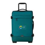 Naviguez chaque voyage avec confiance et contrôle grâce à ce sac à roulettes de taille cabine conçu pour un voyage organisé et confortable. Fabriqué en polyester recyclé avec un tissu ripstop durable, il offre une protection fiable et un look moderne et sportif. Le design à deux roues assure un mouvement fluide, tandis que la fermeture à combinaison homologuée TSA garde vos affaires en sécurité tout au long de votre voyage. À l'intérieur, un compartiment dédié pour ordinateur portable et tablette, ainsi qu'un séparateur, des rubans, une suspension pour clés et des languettes de fixation, facilitent l'organisation de tout. Compact mais polyvalent, ce sac passe facilement des voyages d'affaires aux escapades du week-end. De plus, la personnalisation est un jeu d’enfant : rendez-vous dans notre studio de création pour y ajouter votre logo, votre message ou des informations sur votre entreprise. Besoin d’aide ? Nos experts en design sont là pour vous aider à donner vie à vos idées et à faire voyager votre marque avec élégance.