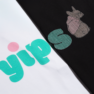 Direct sur tissu (Couleurs d’impression et graphismes illimités. Toucher doux. Agréable à porter), Impression texturée directe sur tissu (Couleurs d’impression et graphismes illimités. Aspect en relief agréable au toucher. Effet 3D) ou Sérigraphie (1 couleur d’impression. Aspect lisse, légèrement en relief. Idéal pour les grandes quantités).